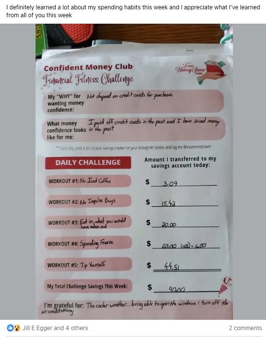People were able to save various amounts such as $158, $483 and $90 of REAL money (that they added to their savings accounts!) as a small sample of the results (as you can see below).