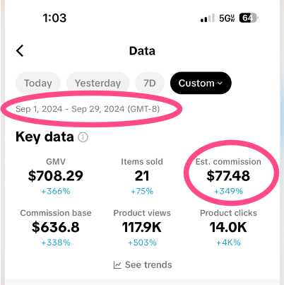 The first two weeks she was eligible, she made $77 (last week of September 2024). She then made almost $300 in October, $400 in November and ahs made $500 every month since then.
